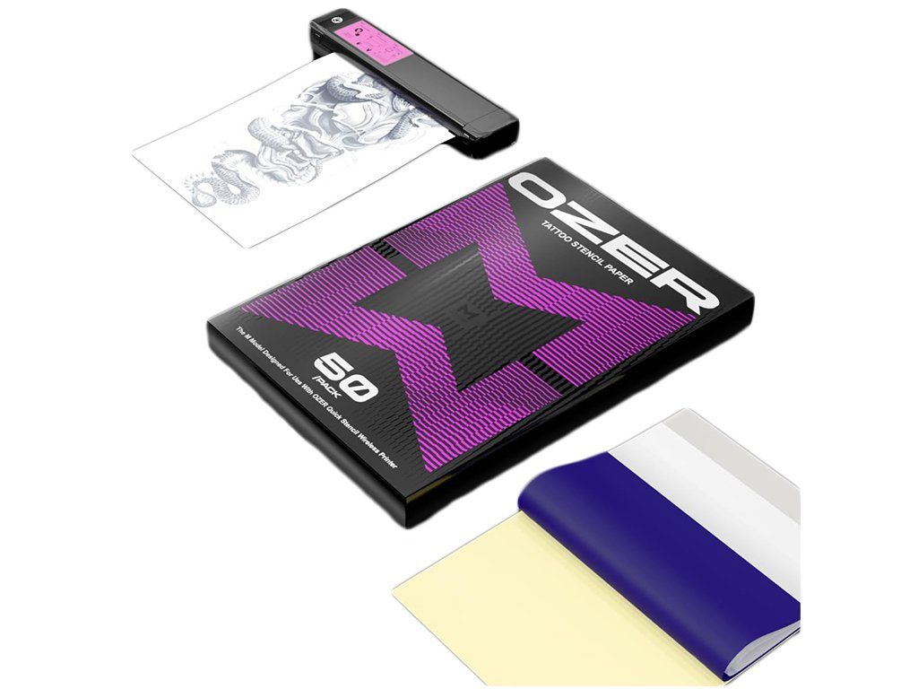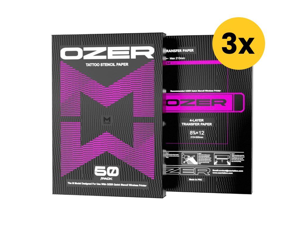 Afmeting: 4-laags transferpapier – Sjabloonpapier voor tatoeages is een vel van 4 lagen, dat een sjabloonvel, beschermpapier, koolstof en achtervel bevat, met een afmeting van ca. 8a 2/5 -x 12, 213x305 mm, dat kan worden gesneden in kleinere vellen voor breder gebruik.