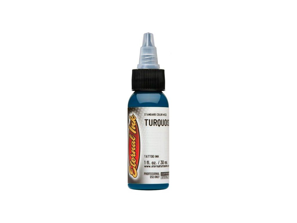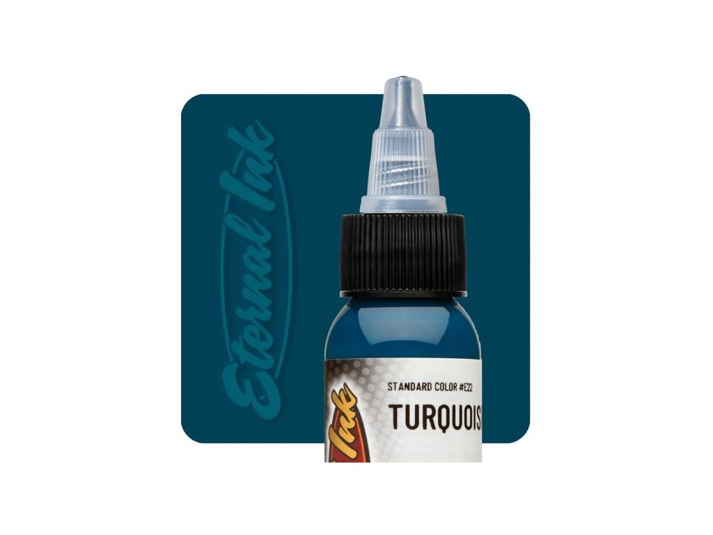 Dit is een aantrekkelijke, iets donkerdere tint turquoise die een opvallende en langdurige kleur biedt die elke tattoo-ontwerp aanvult. De kleur is donker en subtiel genoeg om in grotere delen van een ontwerp te worden gebruikt zonder af te leiden van fijnere details, terwijl hij ook opvallend genoeg is om een uitstekende manier te bieden om complexere ontwerpdetails te benadrukken. De inkt is verkrijgbaar in een selectie van populaire maten en is, net als alle Eternal-inkten, niet-toxisch en organisch.