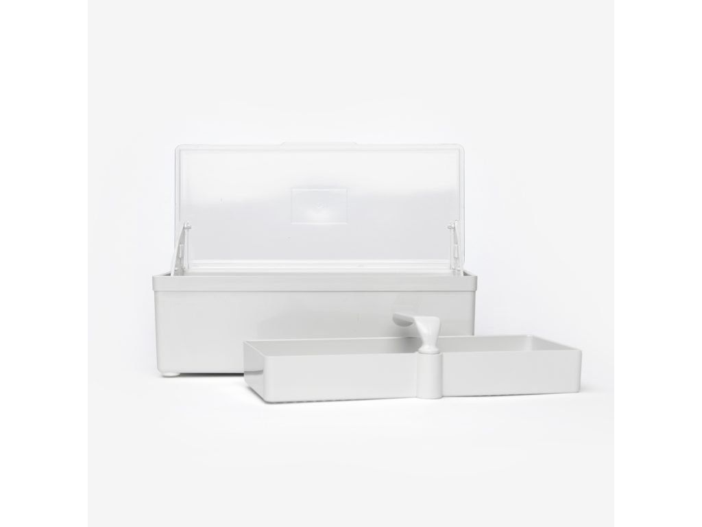 Acrylybox voor het desinfecteren van roestvrijstalen materialen zoals: handvatten, punten, piercinginstrumenten en nog veel meer.