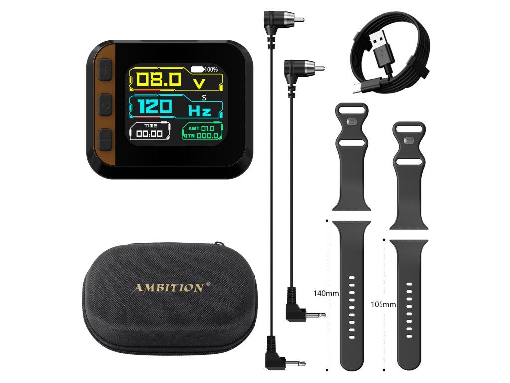De Ambition S2 is een compacte polsband voeding voor RCA tatoeagemachines met een kleurendisplay, knopbediening en een overzicht van de belangrijkste werkgegevens. Het is geschikt voor tatoeëerders die een schonere werkruimte, een lichtere configuratie en snelle toegang tot spanningsinstellingen direct op de pols wensen.