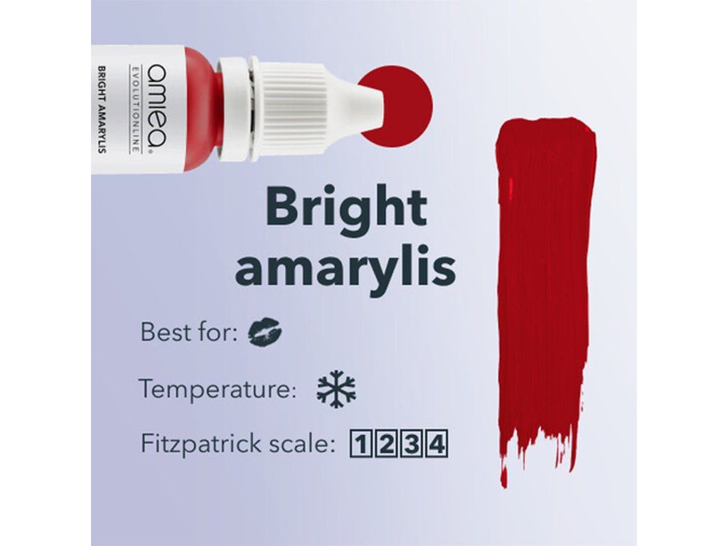 Amiea Bright Amarylis biedt een opvallende robijnrode tint, zorgvuldig samengesteld om een intense en boeiende tint te bieden voor een gedurfde en levendige lipverrijking. Voor een glanzend effect, meng met Classic Poppy of Coral Cinnia en geef uw lippen een vleugje allure. Dit pigment stelt u in staat om precisie en elegantie te bereiken bij het verbeteren van uw lippen.