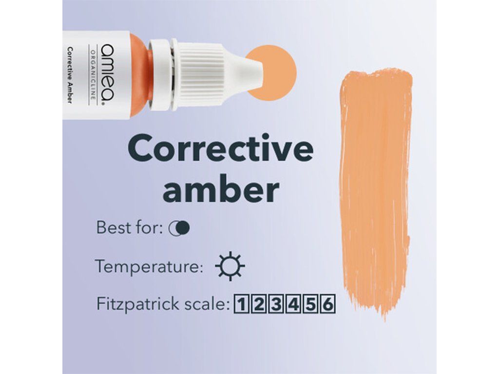 Amiea - Corrigerend Amber is een warme gouden tint, zorgvuldig samengesteld om een essentieel hulpmiddel te zijn bij het mengen en corrigeren van grijze tot blauwe wenkbrauwpigmentatie. Zijn veelzijdigheid in het bereiken van perfecte correctie en harmonisatie van wenkbrauwkleuren maakt het een onmisbare keuze voor PMU-artiesten.