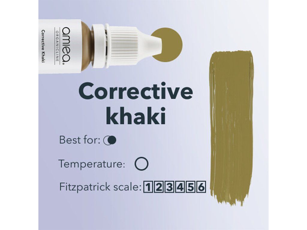 Amiea - Correctief Khaki De formule belichaamt de essentie van precisie en aanpasbaarheid en biedt een heldere, gedempte groene tint die is ontworpen om rode wenkbrauwpigmentatie te corrigeren naar lichtbruin, waardoor een perfect geharmoniseerd resultaat wordt gegarandeerd. Dankzij de veelzijdigheid bij het bereiken van perfecte correcties kunnen PMU-artiesten de balans en natuurlijkheid van de wenkbrauwkleuren herstellen.