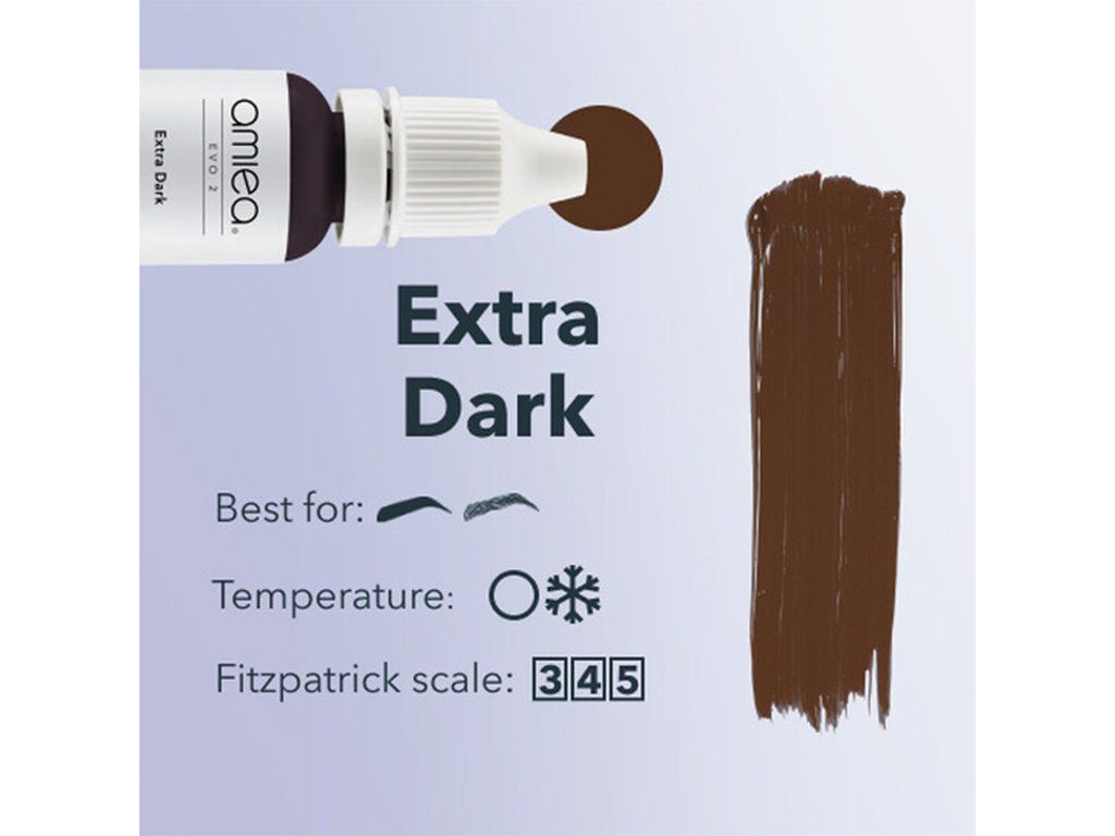 Amiea - Extra Donker is een donkere en koude kleur met extra donkere tint. De oranje ondertoon zorgt voor diepte en definitie, perfect om de gelaatstrekken van uw donkerbruine en zwarte klanten te accentueren en hun wenkbrauwen te verbeteren.