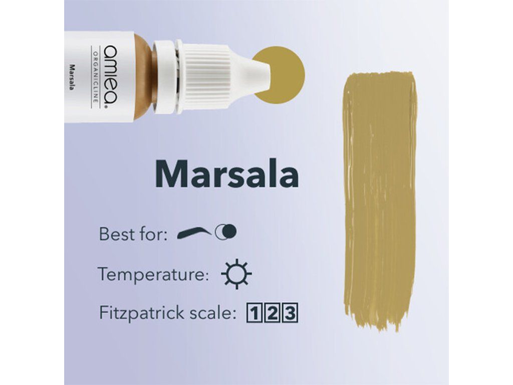 Amiea - Marsalawijn, ontworpen speciaal voor schaduwtechnieken, waarmee u een vleugje natuurlijke rijkdom aan uw wenkbrauwen kunt toevoegen. Marsala heeft een warme lichtbruine tint, zorgvuldig samengesteld om een perfect schaduweffect te bieden. Zijn aanpassingsvermogen om diepte en dimensie te creëren in wenkbrauwverbetering maakt het een essentiële keuze voor elke PMU-artiest.