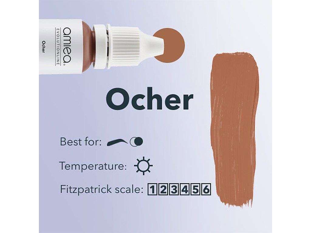 Amiea - Oker belichaamt een warme lichtbruine tint, zorgvuldig samengesteld om naadloos te blenden en warmte toe te voegen aan licht koele wenkbrauwpigmentatie. Het vermogen om subtiel te schaduwen en te corrigeren maakt het een ideale keuze voor het accentueren van de wenkbrauwen en zorgt voor een zachte en natuurlijke uitstraling.