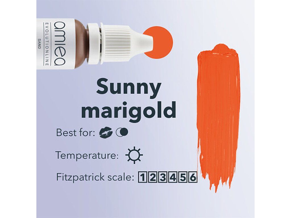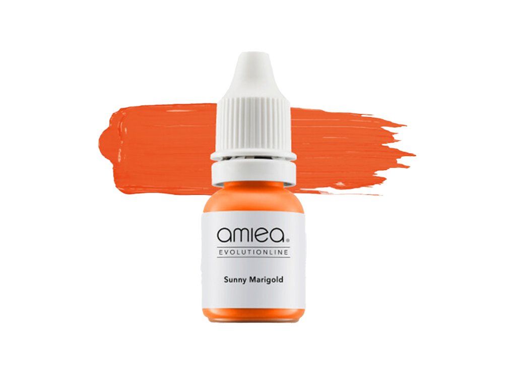 Amiea Sunny Marigold straalt een levendige helder oranje tint uit en is een veelzijdige oplossing die dient als uitstekende basis voor corrigerende mengsels of een vleugje warmte toevoegt aan donkere lippen, koude tinten neutraliseert en een boeiende look bereikt.