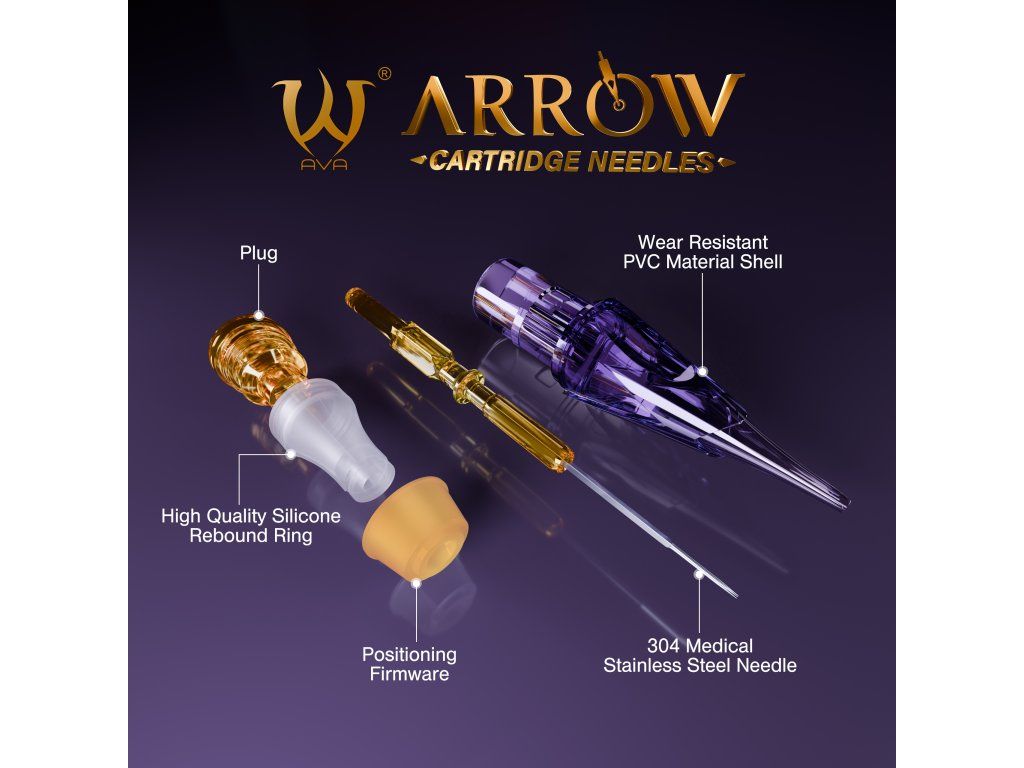AVA Arrow Cartridge Magnum is ontworpen voor het efficiënt opvullen van vlakken, kleurverlopen en soepel schaduwwerk. De naalden zijn gerangschikt in twee parallelle rijen, wat zorgt voor een hoge dekkingsdichtheid en snel werken zonder verlies van precisie.