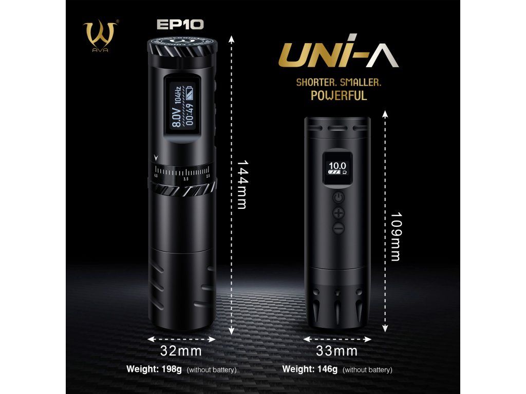 De AVA UNI A in grijze uitvoering met een slag van 3,5 mm is een lichte, draadloze tattoo-machine met een korte body en duidelijke bediening. Geschikt voor tatoeëerders die een mobiele oplossing willen zonder onnodig robuuste constructie.