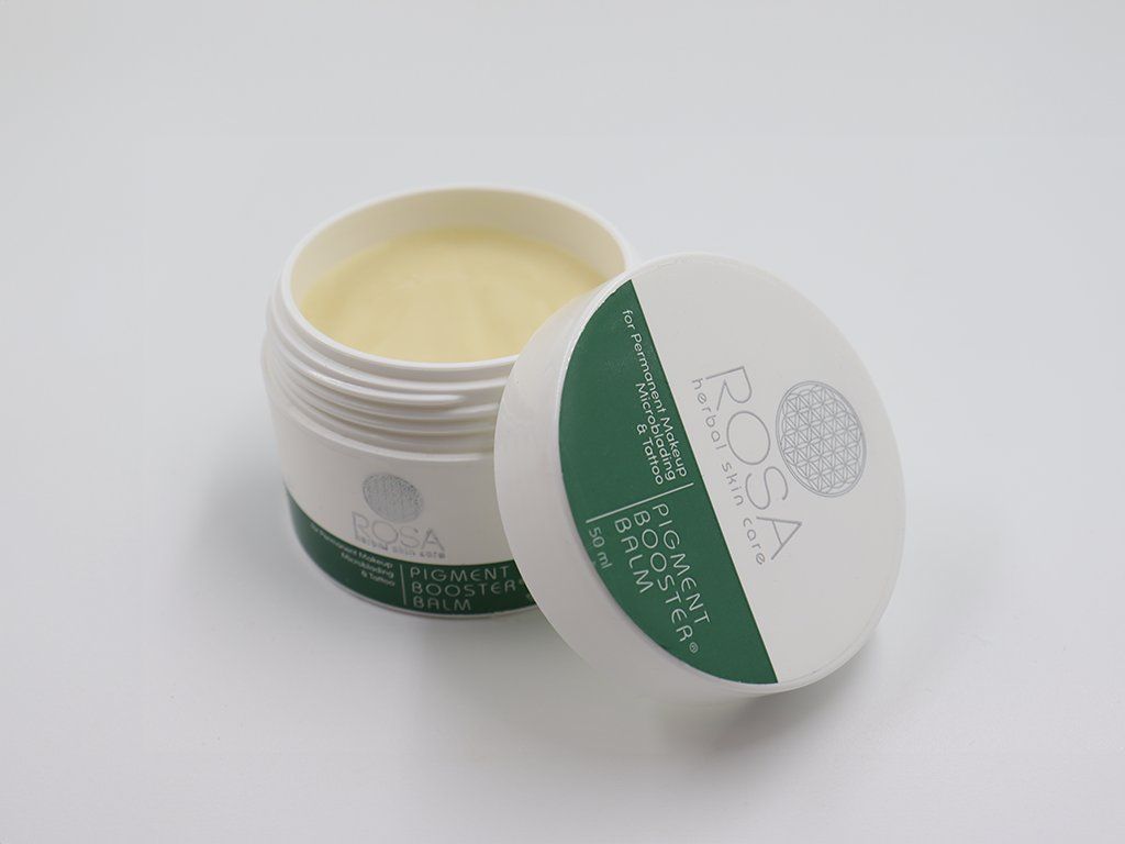 Rosa Pigment Booster is een verzachtende en hydraterende balsem die de huid ontvankelijker maakt voor pigmentimplantatie.