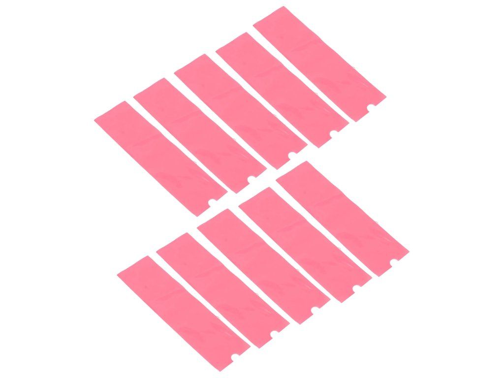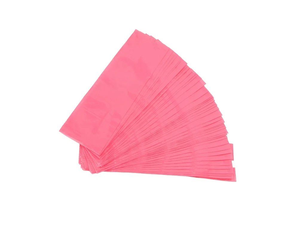 De roze kleur geeft het product een opvallendere uitstraling en behoudt tegelijkertijd het praktische gebruik in de dagelijkse praktijk. Dankzij het wegwerpgebruik zijn de hoezen geschikt voor regulier gebruik, waarbij de nadruk ligt op hygiëne, soepel werken en een duidelijke organisatie. Afmeting 6 × 18,5 cm is geschikt voor gebruik op smallere machines en pennen.