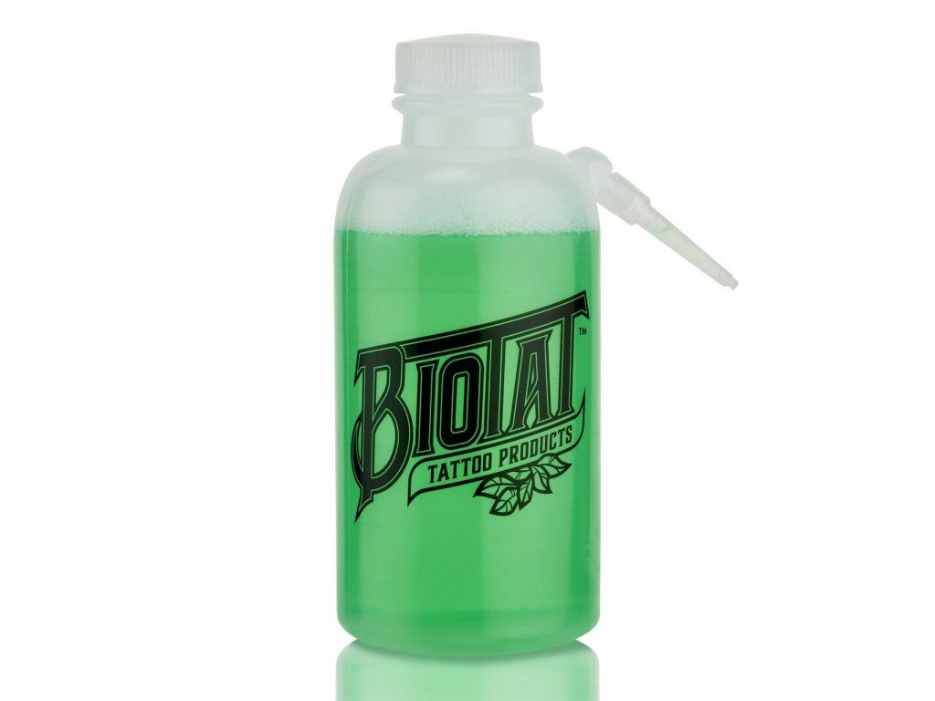De Biotat fles van 500 ml is voorzien van een brede opening, waardoor het vullen van vloeistoffen eenvoudig en zonder knoeien is. Perfect voor groene zeep, maar ook voor andere producten die veel worden gebruikt in een tattoostudio.