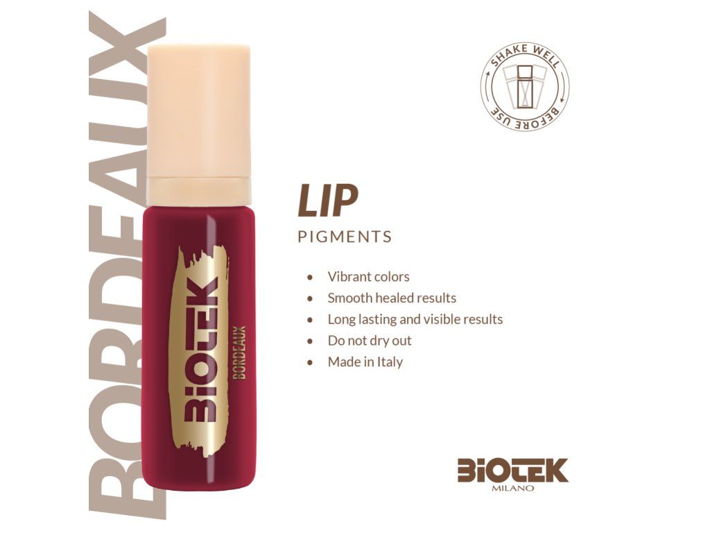 Pigment Biotek Bordeaux is zeer dekkend en biedt een uitgesproken "cool red" tint, speciaal ontworpen voor PMU- en microblading-technici voor lippen. De formulering is uitsluitend vervaardigd in Italië van hoogwaardige grondstoffen, is veganistisch en dierproefvrij. Dankzij de uitstekende implantatie zorgt het voor een gelijkmatige dekking zonder vlekken en een stabiel resultaat na genezing. Dit pigment is geschikt voor klanten die een rijke rode tint met een koele ondertoon wensen.