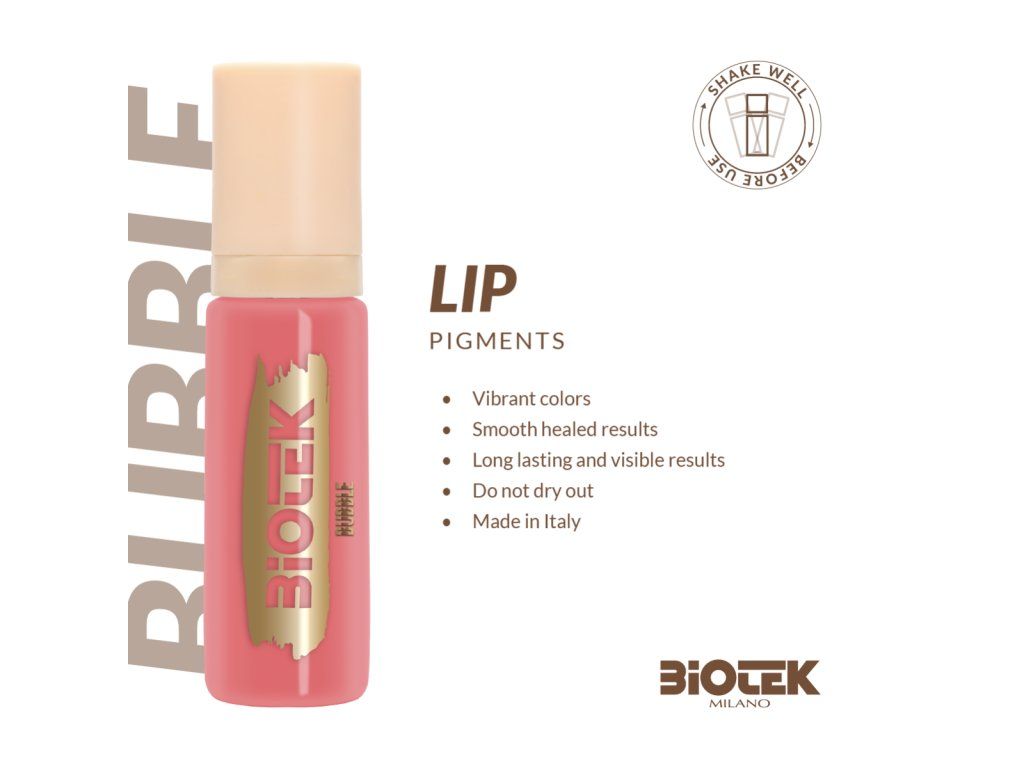 Pigment Biotek Bubble is ontworpen voor PMU lip- en microbladingtechnici en biedt een subtiele warme nude roze tint. De formulering zorgt voor volledige dekking en kleurstabiliteit, waardoor ongewenste kleurverschuivingen na genezing worden geminimaliseerd. Het product is gemaakt in Italië van hoogwaardige ingrediënten, is veganistisch en niet getest op dieren. Flesje-flesje is ontworpen om bijna tot de laatste druppel te kunnen worden gebruikt.
