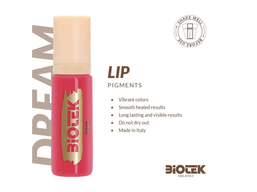 Pigment Biotek Dream 15ml biedt een intense kersentint, ontwikkeld voor schaduw- en contourtechnieken voor lippen. De romige consistentie vergemakkelijkt de pigmentimplantatie en zorgt voor een egale dekking zonder vlekken. Alle componenten zijn vervaardigd in Italië van hoogwaardige grondstoffen, de formule is veganistisch en het product is niet getest op dieren. Het pigment voldoet aan Europese en Amerikaanse regelgeving en biedt na genezing een stabiel resultaat zonder ongewenste ondertoonverschuivingen.