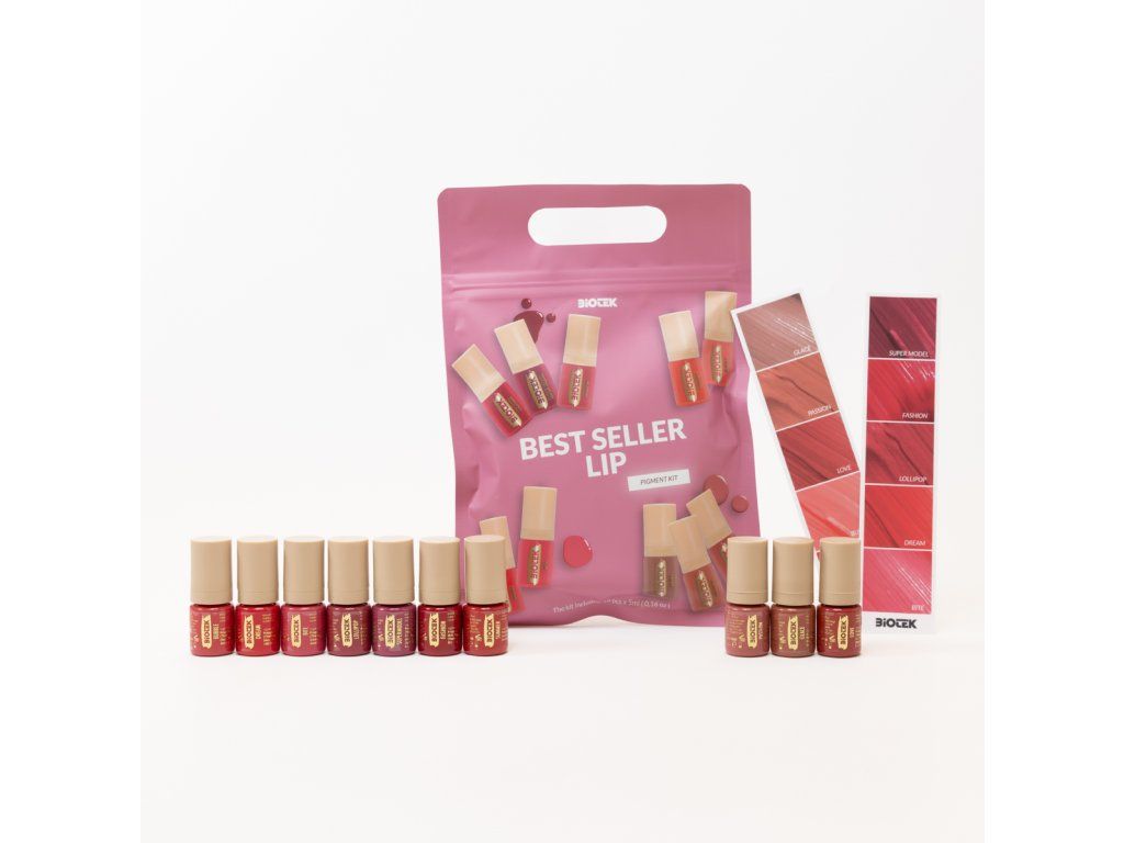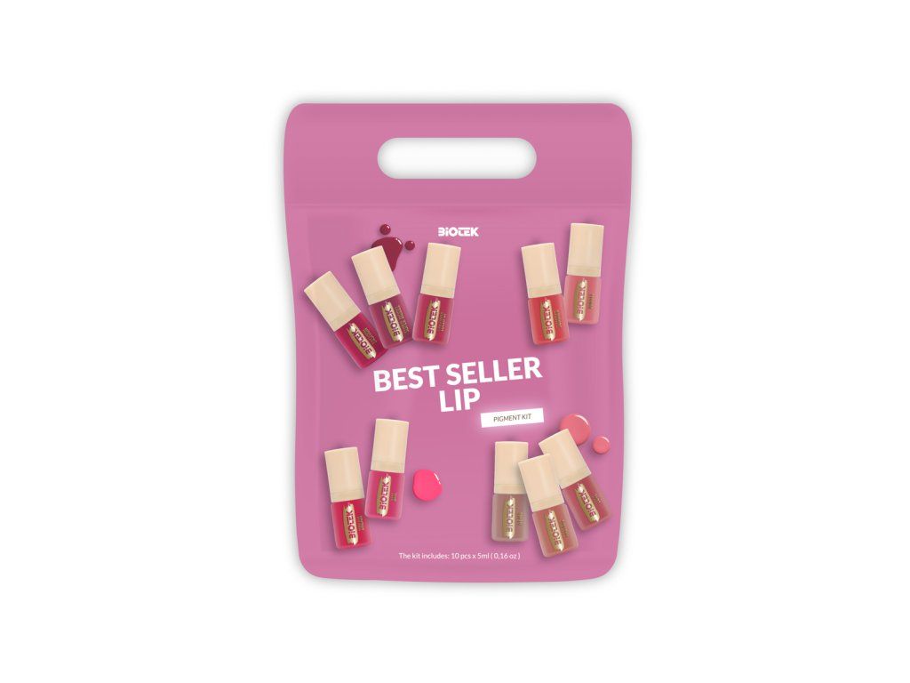 De Biotek Lip Kit set bevat tien populaire tinten die geschikt zijn voor verschillende huidtinten – van natuurlijke nude-kleuren tot roze en koraaltonen. De pigmenten hebben een unieke formule die de applicatie vergemakkelijkt, voorkomt dat het ongelijkmatig intrekt en zorgt voor een prachtig, egaal resultaat zonder vlekken.