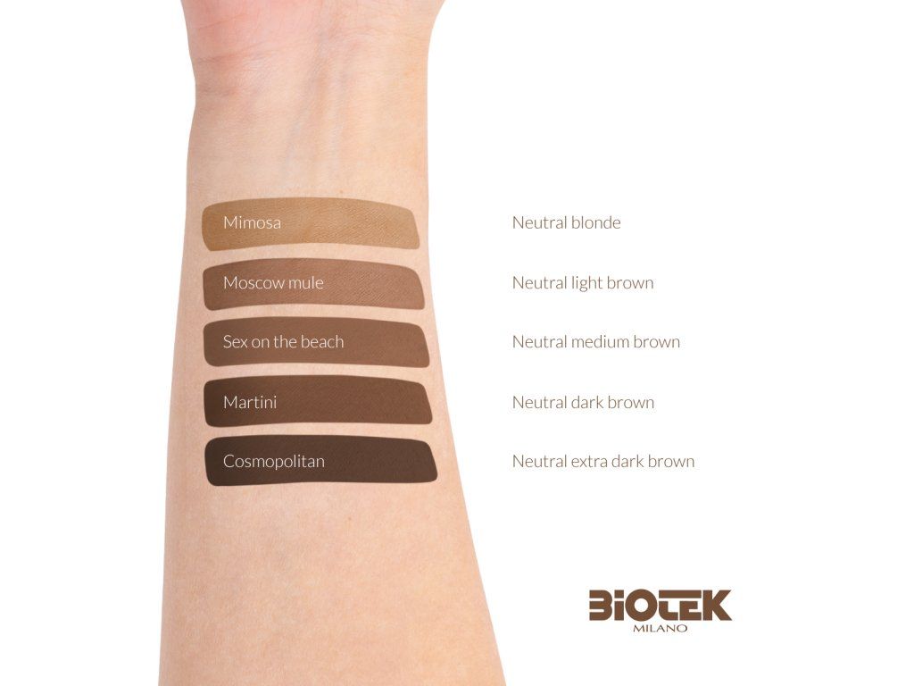 Pigment Biotek Martini is ontwikkeld voor de "Rapid Shading" techniek voor wenkbrauwen en biedt een zachte, medium donkerbruin-bruine tint die ideaal is voor klanten met van nature donkerbruine wenkbrauwhaartjes en een medium tot donkerdere huid. De neutrale ondertoon minimaliseert het risico op ongewenste vergrijzing of roodheid na genezing. De kleur is 100% anorganisch, geproduceerd in Italië volgens Europese normen, veganistisch en niet getest op dieren. Dankzij de hoge kwaliteit van het pigment en de implantatietechnologie wordt een stabiel resultaat bereikt met volledige dekking en langdurige kleurstabiliteit.