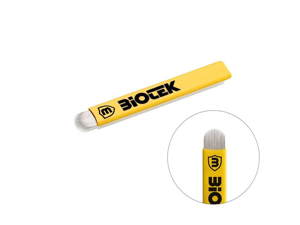 Gouden Flexy 18U naald met een diameter van 0,15 - Voor super dunne en fijne haartrekjes. Dankzij de scherpte snijdt het de huid precies zonder trauma. BIOTEK presenteert met trots een nieuwe lijn microbladingproducten, ontworpen om aan uw behoeften te voldoen!