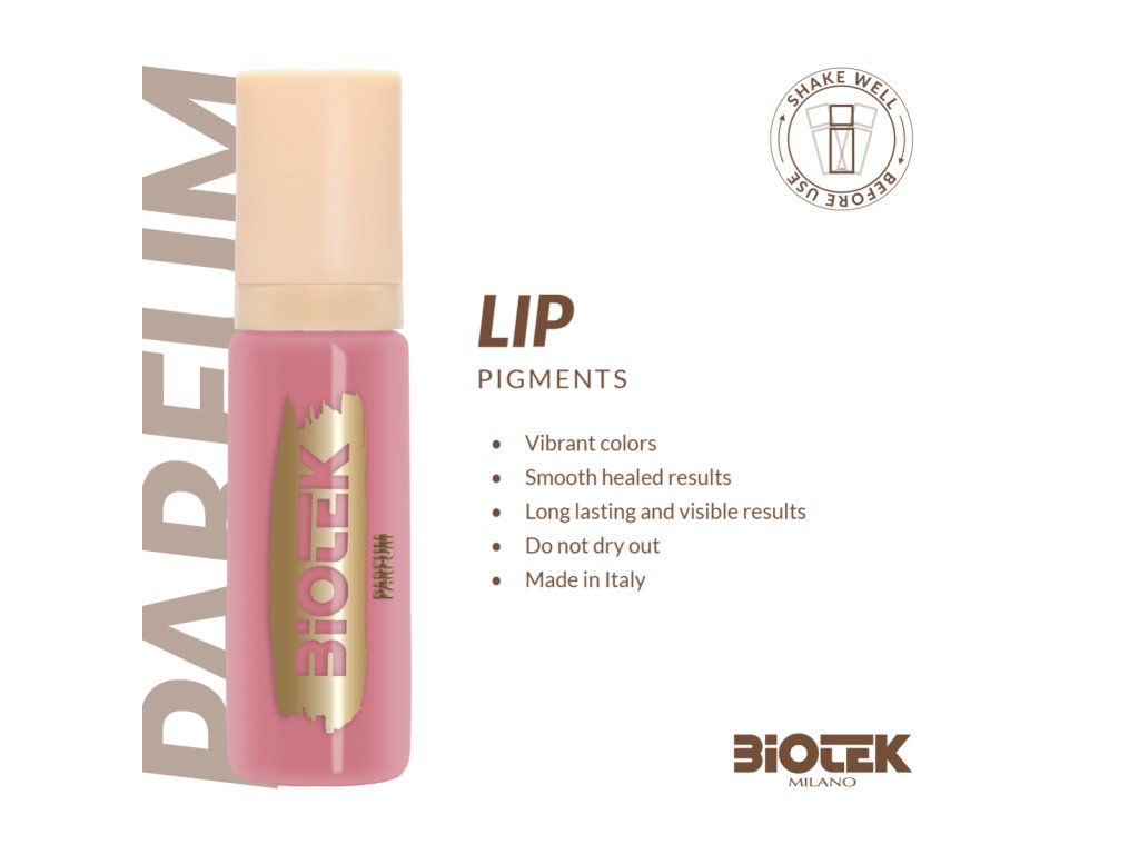 Pigment Biotek Parfum 15 ml is bedoeld voor permanente make-up en microblading technici voor lippen. De "Parfum" tint wordt gedefinieerd als een zachte oudroze tint met een neutrale ondertoon, wat universele toepassing mogelijk maakt. De productie vindt plaats in Italië met hoogwaardige grondstoffen. Het pigment is veganistisch, niet getest op dieren en voldoet aan de EU-regelgeving (bijv. REACH). Dankzij de formulering biedt het volledige dekking en kleurstabiliteit na genezing, minimaliseert het ongewenste kleurverschuivingen en is het geschikt voor een breed scala aan klanten.