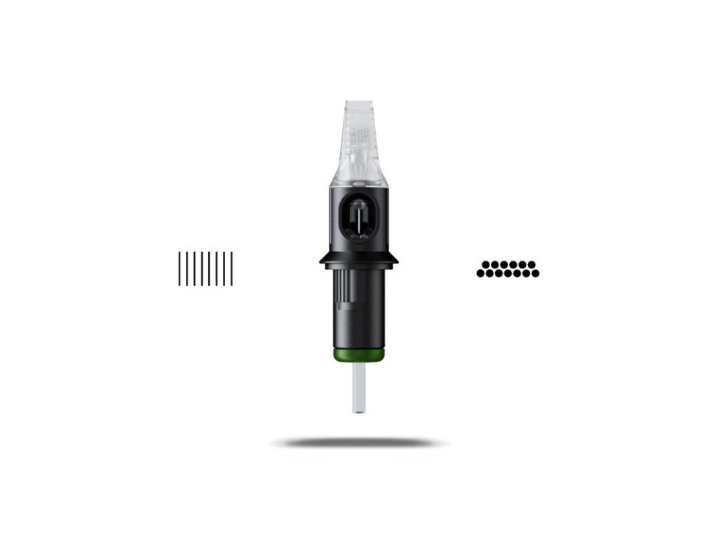 De nieuwste cartridges van de uitvinder van cartridges, de Duitse Cheyenne Binnenin de punt van de cartridge bevindt zich een capillaire buis met een reservoir. Tijdens het vullen absorberen onze capillaire cartridges meer inkt dan gewone cartridges. Het resultaat is een tot 10 keer langere inktstroom voordat u de punt opnieuw in de kleur doopt. Het mengen van kleuren in de cartridge en het volledig reinigen met water is nog steeds gegarandeerd. Verbeterde naaldgeleiding maakt ultraprecies werk in elke richting mogelijk. Capillaire cartridges zorgen ervoor dat de inkt gelijkmatig wordt verdeeld over alle individuele naalden, zelfs in grote maten zoals 15 magnum. Het resultaat is dat het getatoeëerde gebied consistent, betrouwbaar en vooral sneller wordt opgevuld, wat voor de klant minder huidbeschadiging betekent. Capillaire kleurstofopslag voor tot 10 keer langere inktoevoer Verbeterde naaldgeleiding voor ultraprecies en omnidirectioneel werk Gelijkmatige inktverdeling op alle individuele naalden voor betere tatoeage resultaten en minder huidbeschadiging 100% kwaliteitscontrole Kleurdoppen voor eenvoudige identificatie van de cartridgeconfiguratievideo