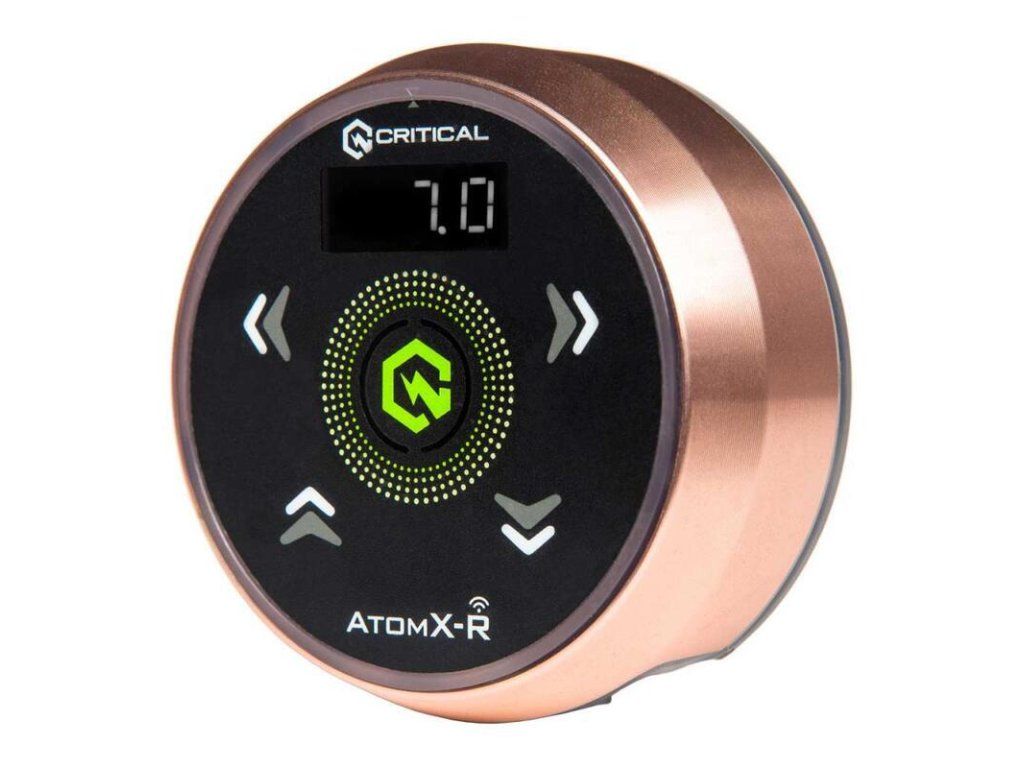De AtomX-R is ontworpen om alle dezelfde geweldige functies te hebben als de originele AtomX met de volgende extra functies: 1. Toegevoegde mogelijkheid om draadloos te synchroniseren met de CXP19 voetpedaal - minder kabels voor een opgeruimdere setup. 2. Dubbele uitgangen voor het aansluiten van meerdere machines 3. Vernieuwd overlay-ontwerp voor een verbeterde gebruikersinterface. De AtomX-R is verkrijgbaar in drie opwindende ontwerpen: zwart, roségoud/wit en roségoud/zwart. Kenmerken: Dubbele uitgang voor meerdere machine-presets Draadloze voetpedaalcompatibiliteit beschikbaar CXP19 Ingebouwde neodymium magneten voor sterke hechting op metalen oppervlakken Jumpstart ingeschakeld voor het hard starten van machines zoals de Cheyenne Thunder Energie-onafhankelijk geheugen (behoudt presets, zelfs bij stroomuitval) Momentary of Latching voetpedaalmodi (eenvoudig schakelen met één druk op de knop) - continu aan, of bij indrukken van het pedaal Pedalease-knop (als de continue modus niet is ingeschakeld, is er geen voetpedaal nodig) Specificaties: Geïntegreerde kortsluitingsbeveiliging Piekstroom 6 A, werkelijke RMS 3 A continue stroom Universele ingang 110-240VAC 50/60Hz 2 jaar volledige garantie Gemaakt in de VS Inclusief conformiteitsverklaring voor Tsjechië en Slowakije.