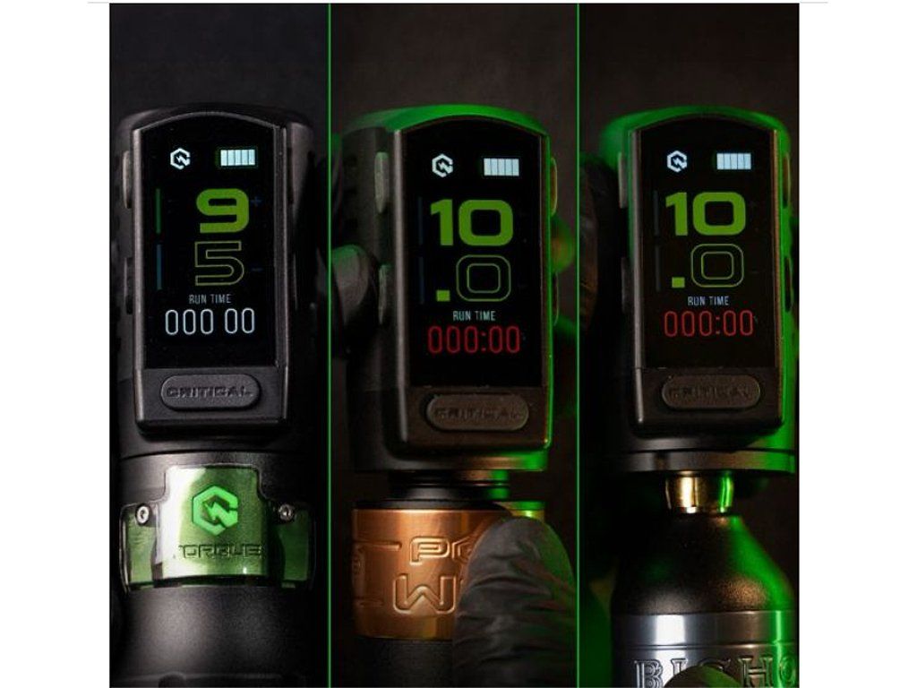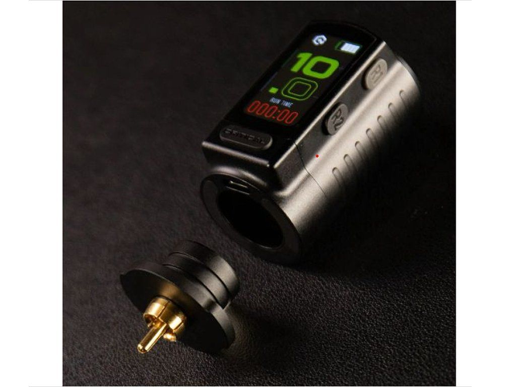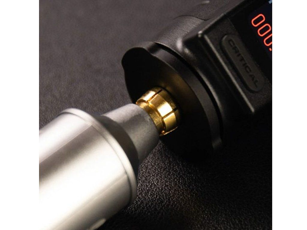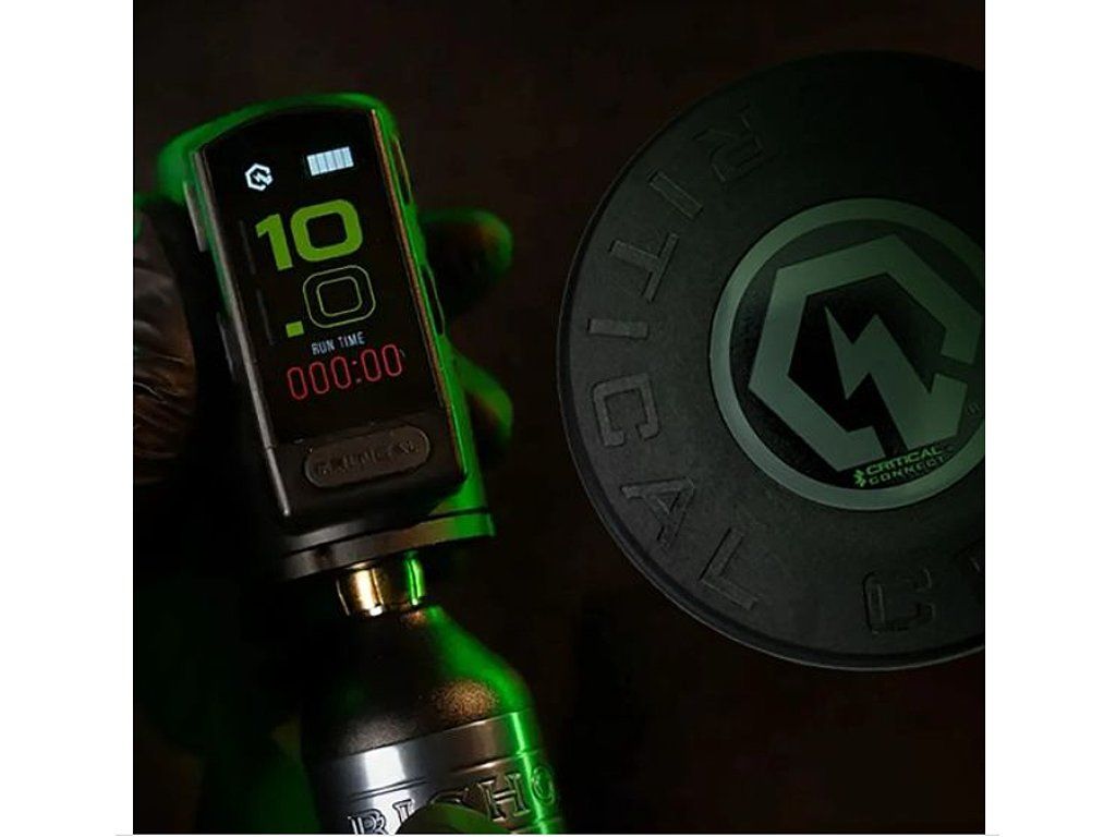 Dankzij de magnetische aansluiting sluit de V3-batterij naadloos aan op de Critical Torque machine en de Bishop Power Wand. Deze veelzijdige batterij bevat ook een RCA-converter voor universele compatibiliteit met elke RCA-machine.