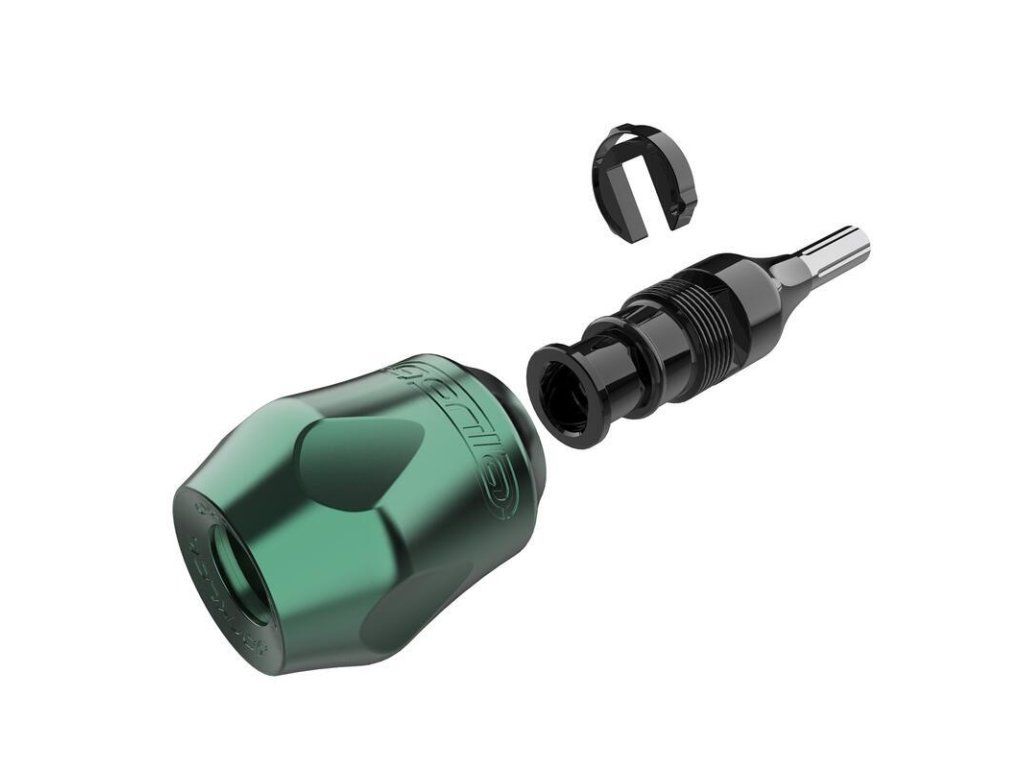 De Gorilla Grip Click Ergo van Darklab - FK Irons is ontworpen met de nadruk op ergonomie en een natuurlijke grip van de tattoo-machine. De grootte ervan elimineert de noodzaak om de grip te omwikkelen met veel beschermende tapes op de grip. De Gorilla Click Ergo Grip is 32 tot 38 mm dik voor optimaal comfort en om handpijn tijdens langdurig tatoeëren te voorkomen. De inkeping op de grip maakt het gemakkelijker om de grip vast te pakken en vast te houden zonder kracht te hoeven zetten, waardoor het een perfecte partner is voor zowel lijnwerk als inkleuren. Het gewicht helpt bij het werken met de naald bij dikke lijnen of grote vullingen. Met het Ratchet Disc click systeem stelt u de naald diepte in door te draaien en dankzij de constructie behoudt de grip zijn naald diepte instelling en verandert deze niet, zelfs niet bij gebruik van een zware machine. De 3 mm opening voor de schacht is compatibel met alle machines met een ingebouwde geleidingsschacht. Belangrijkste kenmerken: Verstelbare naald diepte Diameter: 32 - 38 mm Ergonomisch ontwerp Compatibel met autoclaaf en koude sterilisatie Gemaakt in de VS door FK Irons Celtic Supply is een officiële distributeur van FK IRONS / Darklab producten.