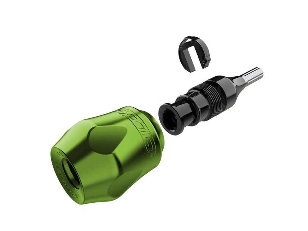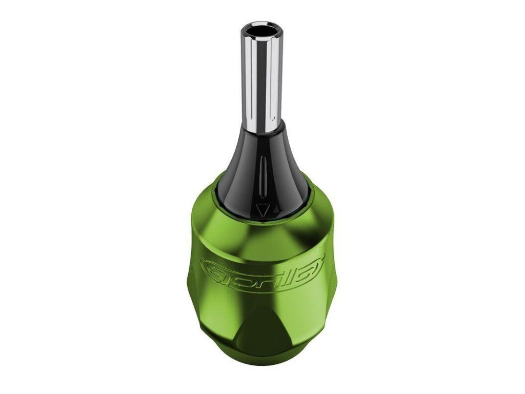De Gorilla Grip Click Ergo van Darklab - FK Irons is ontworpen met de nadruk op ergonomie en een natuurlijke grip van de tattoo-machine. De grootte ervan elimineert de noodzaak om de grip te omwikkelen met veel beschermende tapes op de grip. De Gorilla Click Ergo Grip is 32 tot 38 mm dik voor optimaal comfort en om handpijn tijdens langdurig tatoeëren te voorkomen. De inkeping op de grip maakt het gemakkelijker om de grip vast te pakken en vast te houden zonder kracht te hoeven zetten, waardoor het een perfecte partner is voor zowel lijnwerk als inkleuren. Het gewicht helpt bij het werken met de naald bij dikke lijnen of grote vullingen. Met het Ratchet Disc click systeem stelt u de naald diepte in door te draaien en dankzij de constructie behoudt de grip zijn naald diepte instelling en verandert deze niet, zelfs niet bij gebruik van een zware machine. De 3 mm opening voor de schacht is compatibel met alle machines met een ingebouwde geleidingsschacht. Belangrijkste kenmerken: Verstelbare naald diepte Diameter: 32 - 38 mm Ergonomisch ontwerp Compatibel met autoclaaf en koude sterilisatie Gemaakt in de VS door FK Irons Celtic Supply is een officiële distributeur van FK IRONS / Darklab producten.