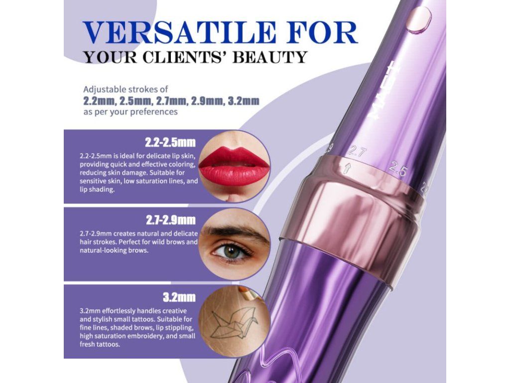 Mast P60 is een elegante, veelzijdige, ergonomische en technologisch geavanceerde tattoo pen. Artiesten zullen het elegante ontwerp met gebogen display en antislipgreep waarderen voor praktische en esthetische doeleinden.