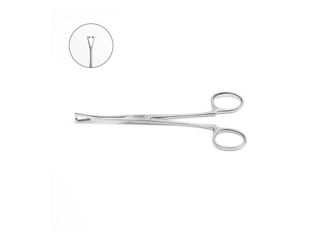 driehoekige tang, speciaal gevormd om lichaamsdelen te bereiken waar ronde tangen niet bij kunnen, namelijk het oorgebied.