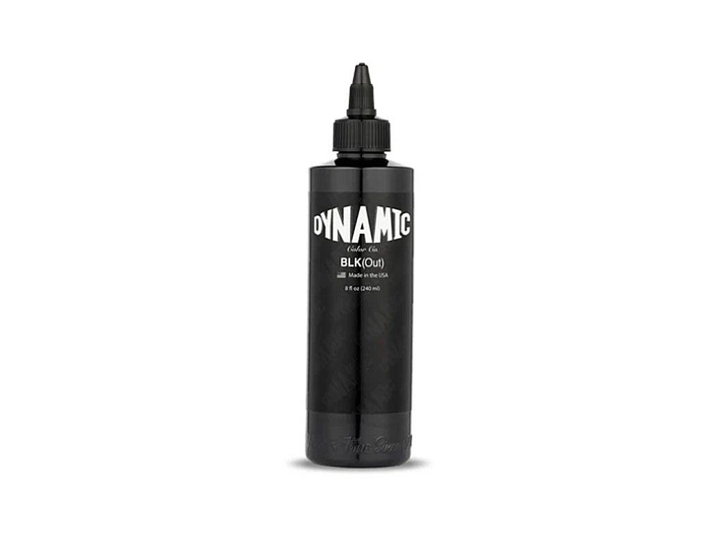 BLKOUT Ink van Dynamic is een speciale tatoeage-inkt, speciaal geformuleerd voor tatoeëerders die werken aan blackout-tattoos en zwaar zwart werk.