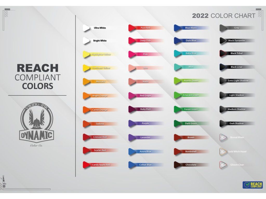 Dynamic Ink in samenwerking met Viking Ink presenteert een nieuwe versie van pigmenten die voldoen aan de REACH-regelgeving, die sinds januari 2022 van kracht is in alle EU-landen.