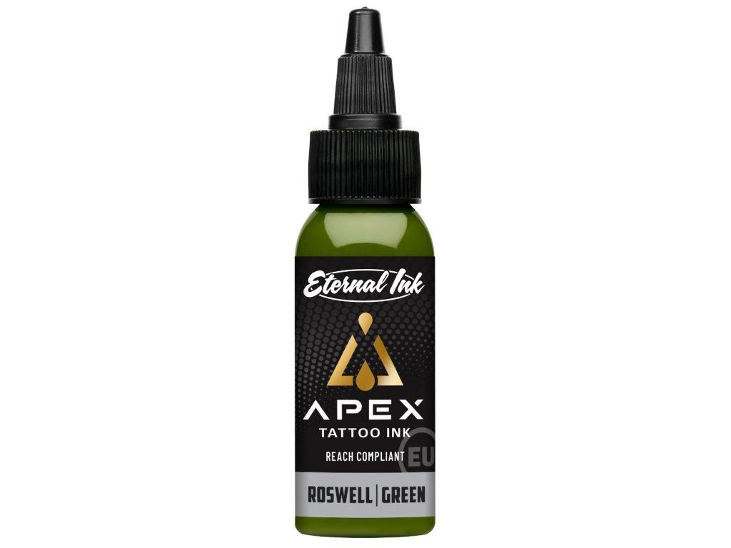 ROSWELL | GREEN: Een rijke, aardse groentint die een gevoel van natuur en groei oproept. Kan worden gebruikt om tatoeages te creëren die geïnspireerd zijn op de schoonheid van de natuurlijke wereld, met name die welke weelderige bossen of levendig plantenleven weergeven.