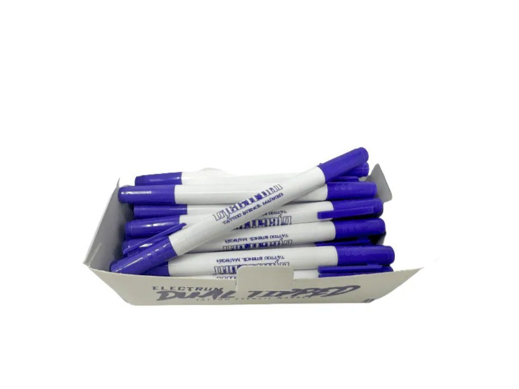 De Electrum Tatto Stencil Marker is gevuld met paarse stencil inkt die tot 10 keer langer zichtbaar blijft dan traditionele huidmarkers, zelfs na voorbereiding met veelgebruikte alcoholhoudende antiseptica zoals ChloraPrep of DuraPrep.
