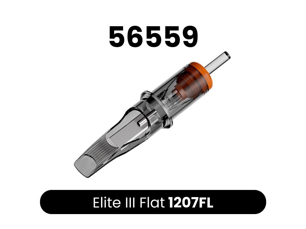 Kwalitatieve ELITE III cartridges. 1. bevatten een membraan, zodat inkt niet in de grip en vervolgens in de machine kan doordringen 2. lichtgewicht body van transparant plastic voor eenvoudige controle 3. lagere naaldweerstand - hogere snelheden mogelijk bij minder belasting van de machine 4. afgeronde punt voor eenvoudiger werk 5. gladde afwerking - irriteert de huid van de klant niet 6. compatibel met cartridge machines en grips 7. EO gas sterilisatie 8. naald gemaakt van 304 roestvrij staal voor medische doeleinden 9. 20 naalden per doosje 10. eenvoudig openen en sluiten van het doosje 11. breed scala aan configuraties 12. lange houdbaarheid 13. kleurcodering op typeCE-certificaat voor Elite cartridges
