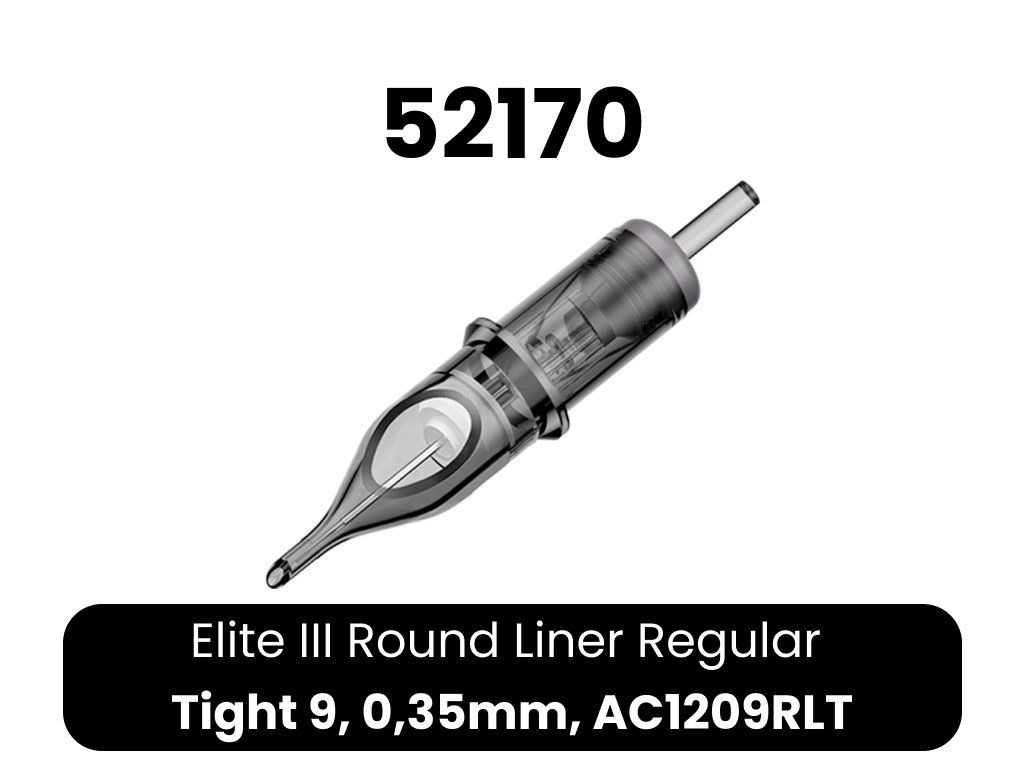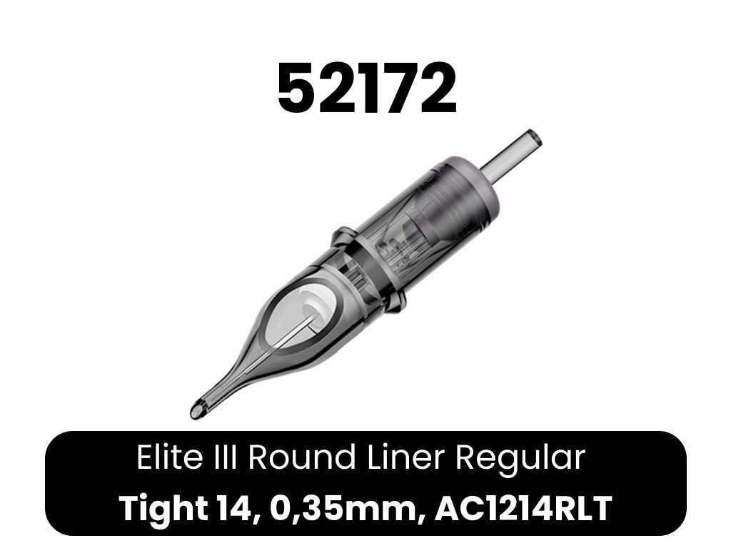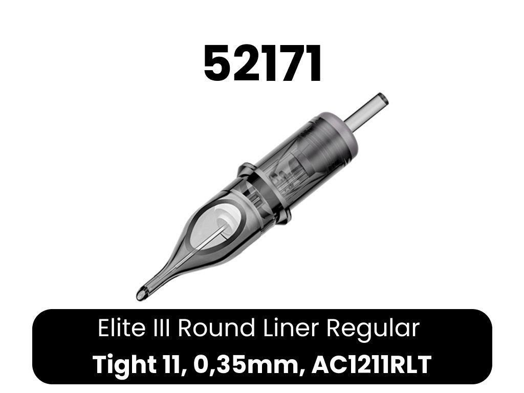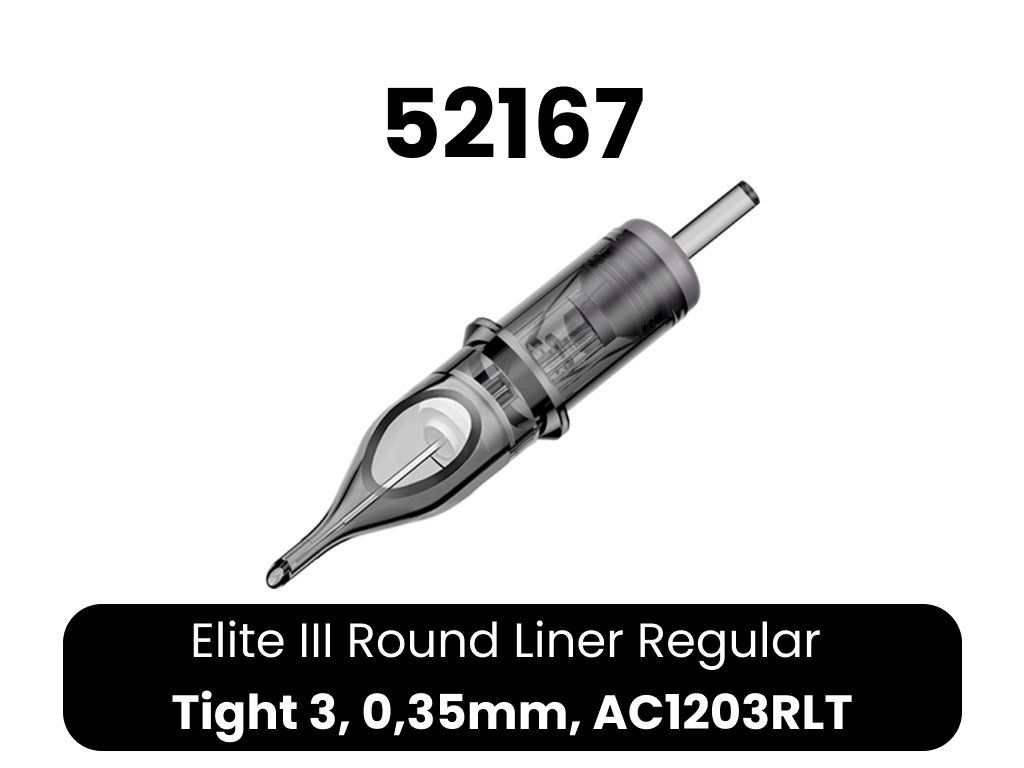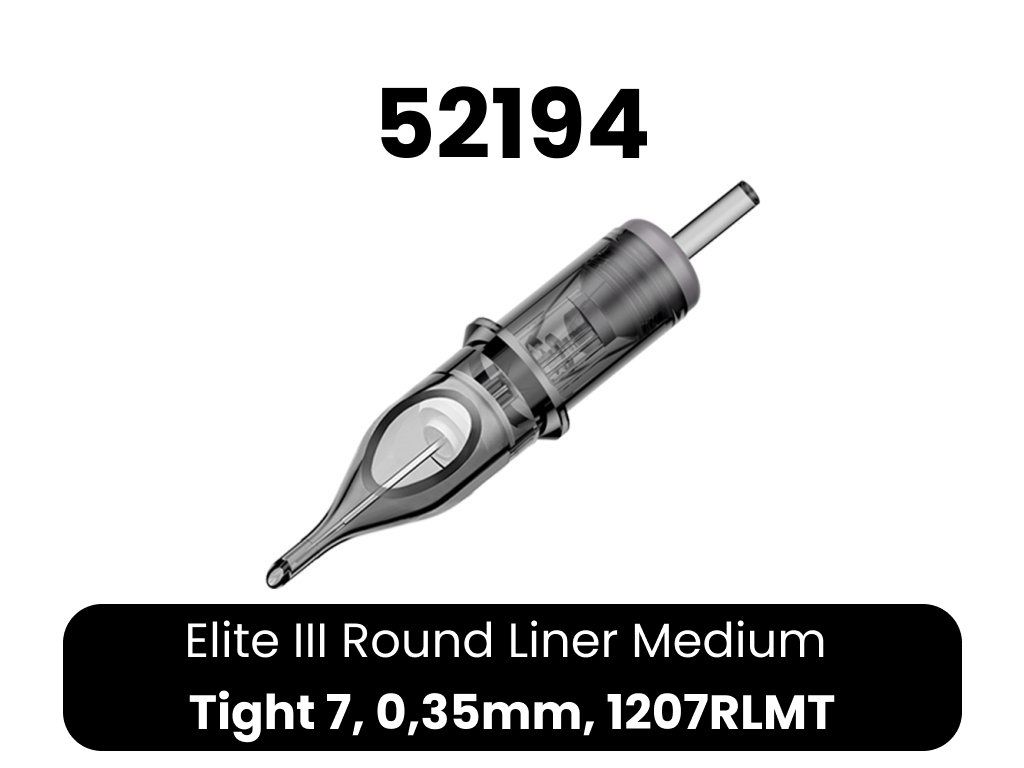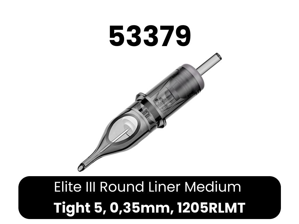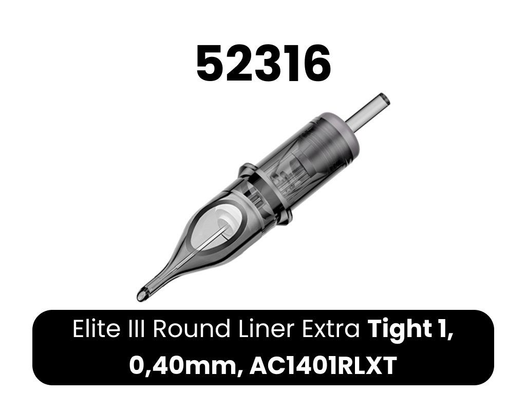Kwalitatieve ELITE III cartridges. 1. bevatten een membraan, zodat inkt niet in de grip en vervolgens in de machine kan doordringen 2. lichtgewicht body van transparant plastic voor eenvoudige controle 3. lagere naaldweerstand - hogere snelheden mogelijk bij minder belasting van de machine 4. afgeronde punt voor eenvoudiger werk 5. gladde afwerking - irriteert de huid van de klant niet 6. compatibel met cartridge machines en grips 7. EO gas sterilisatie 8. naald gemaakt van 304 roestvrij staal voor medische doeleinden 9. 20 naalden per doosje 10. eenvoudig openen en sluiten van het doosje 11. breed scala aan configuraties 12. lange houdbaarheid 13. kleurcodering op typeCE-certificaat voor Elite cartridges