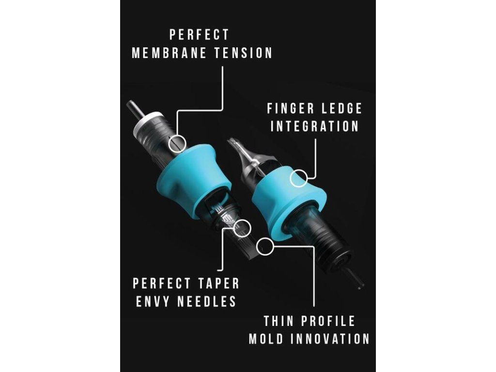 De Cartridge Envy Gen 2 heeft een gestroomlijnder, lichter ontwerp en een vingersteun; het biedt een niveau van comfort en controle dat je nog niet eerder hebt gezien in een naaldcartridge. Vervaardigd met dezelfde uitstekende kwaliteit die artiesten van TATSoul gewend zijn, zijn de Gen 2 cartridges uitgerust met de Envy Needle merkkenmerken en configuraties die je kent en waar je van houdt. Artiesten-goedgekeurd Artiesten drijven onze innovatie aan en TATSoul verwerkt feedback van artiesten in al onze productontwerpen Perfect Needle Taper Envy cartridge naalden zijn perfect gevormd en bieden een configuratie voor elke behoefte Het Envy kwaliteitsproces heeft de hoogste normen voor QC-processen in de branche. Elke naald moet een grondig 30-stappen inspectieproces doorlopen voordat deze de naam Envy krijgt Vingersteun De cartridge bevat een vingersteun