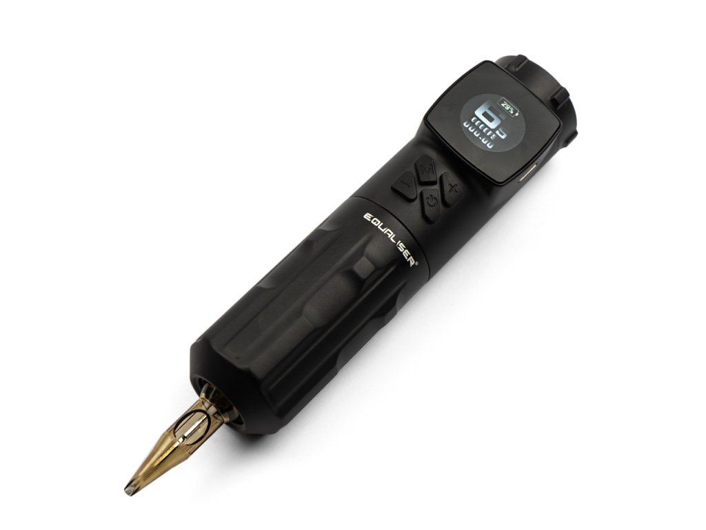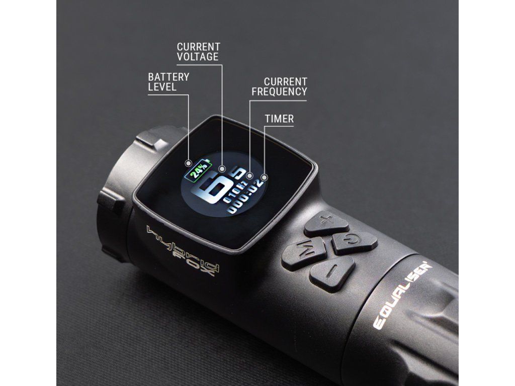 Een klein, maar duidelijk LED-display toont de belangrijkste informatie, zoals de batterijstatus, de huidige spanning en de looptijd. De tattoo pen wordt bediend met vier intuïtieve knoppen. Maak uw werk gemakkelijker – kies voor de Hybrid Fox. De machine is perfect voor het creëren van precieze contouren, lijnen en schaduwen. Een stevige constructie en lichtgewicht maken langdurig gebruik mogelijk zonder vermoeidheidsgevoel, wat cruciaal is bij intensief tatoeëren.