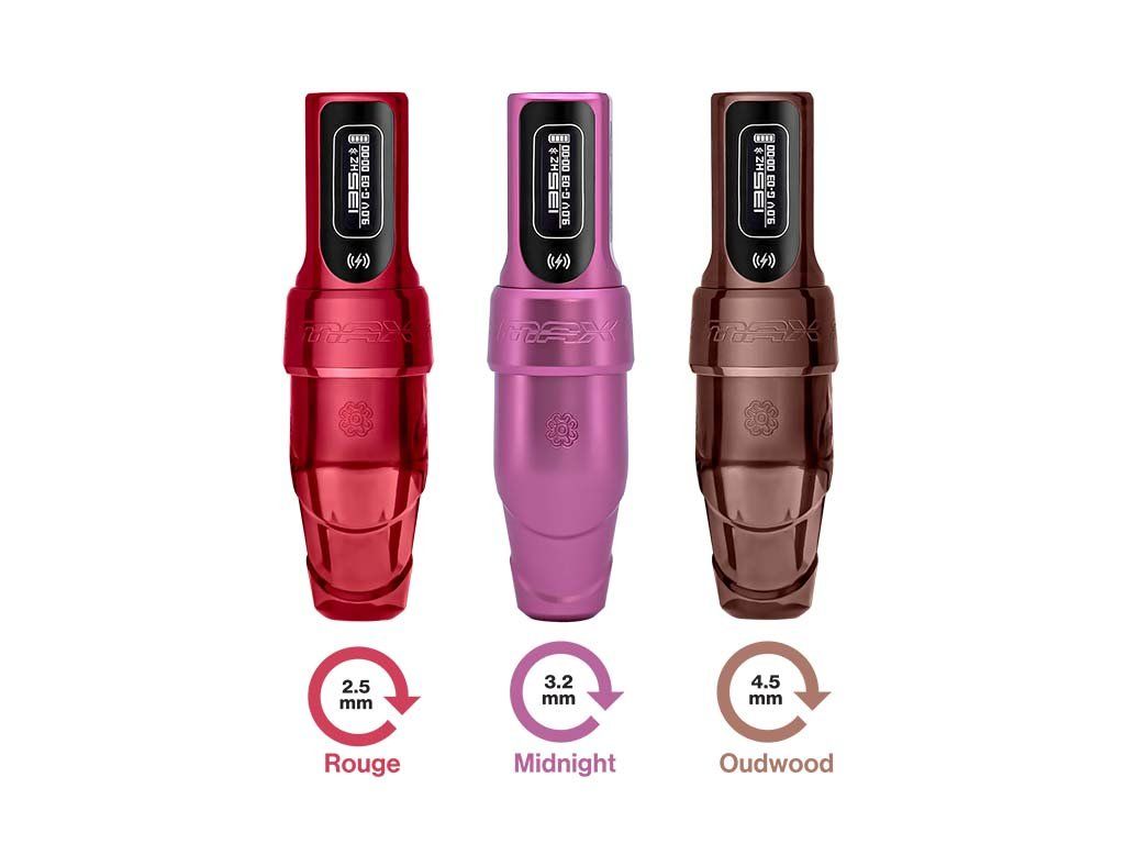 De Flux S Max is uitgerust met een nieuw digitaal display, een ingebouwd menu met de PowerBolt Il batterij, waarmee alle functies en instellingen van de machine perfect kunnen worden bediend. PowerBolt II stelt de artiest in staat om eenvoudig door de menu-opties te bladeren, Give in te schakelen en aan te passen, de batterijduur af te lezen en de machine-display te personaliseren door Hertz of Volt te selecteren en in stappen van 0,1 of 0,5 aan te passen. De Flux S Max is uitgerust met nieuwe, state-of-the-art technologie die leert hoe u graag werkt, van het type inkt, tot de tip/naald en het drukniveau dat u toepast.