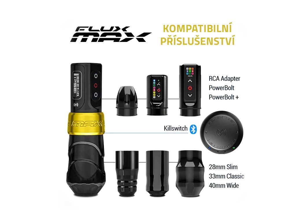 Flux Max is direct uit de doos volledig compatibel met bestaande FK Irons-accessoires en draadloze apparaten, inclusief de Darklab Killswitch en mobiele app. Indien nodig kunt u de Powerbolt 2.0 vervangen door de originele Powerbolt of Powerbolt+.