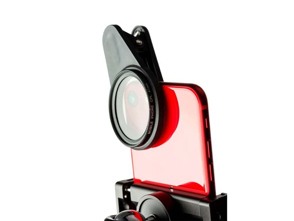 De lens klikt op de mobiele telefoon en blijft op zijn plaats door een magnetisch mechanisme. De polarisatie van de lens past perfect bij het OLED-licht.