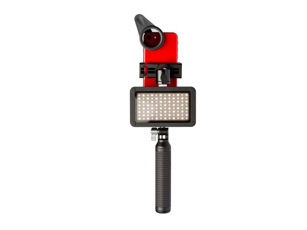 De afsteller is zo geïnstalleerd dat een perfecte aanpassing van het licht aan de positie van de mobiele telefoon of camera wordt gegarandeerd. Eenvoudig instelbaar.