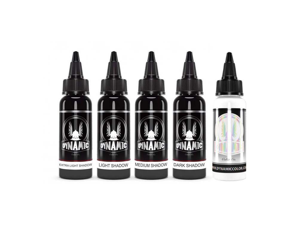We hebben een greywash kleurensset Viking Ink van Dynamic voor u samengesteld. U vindt er 4 zwarte kleuren, verdund van licht naar donker, plus ultra witte kleur in 15ml volume. Deze set is ideaal voor schaduwwerk, fijn zwart werk, realisme, dotwork en meer.