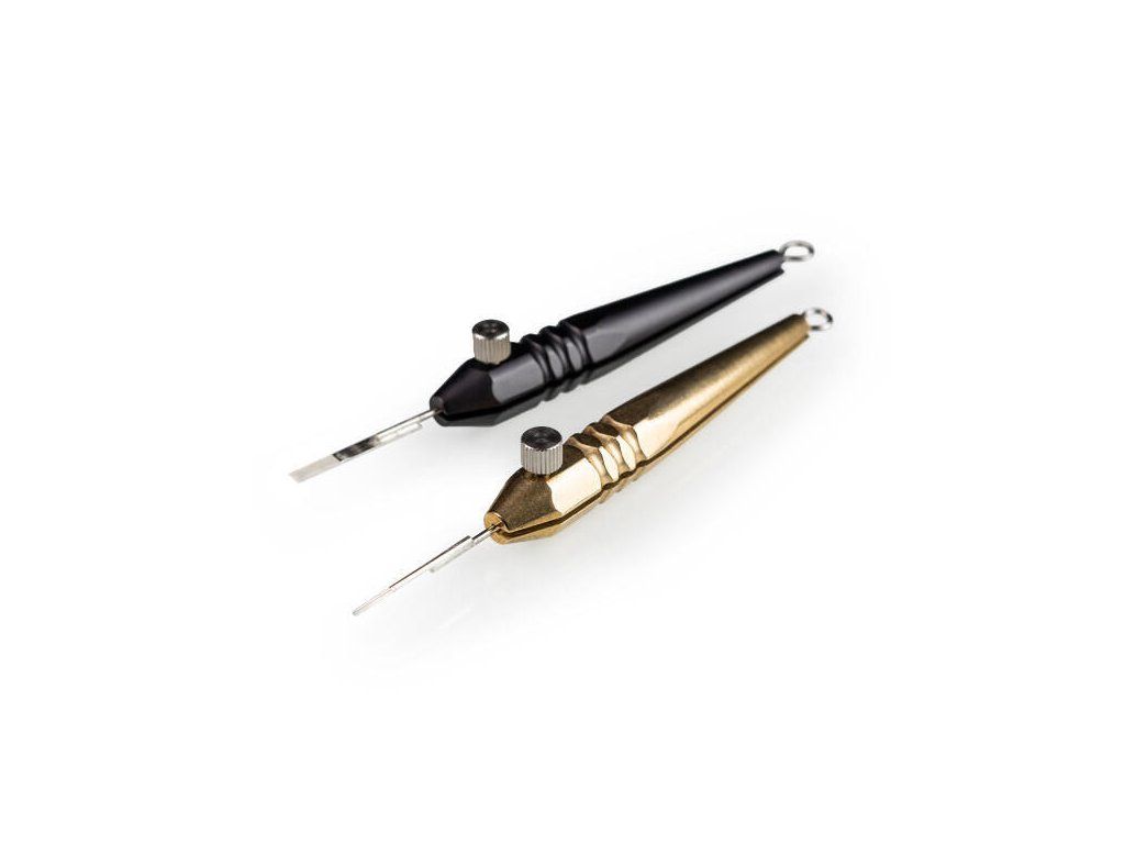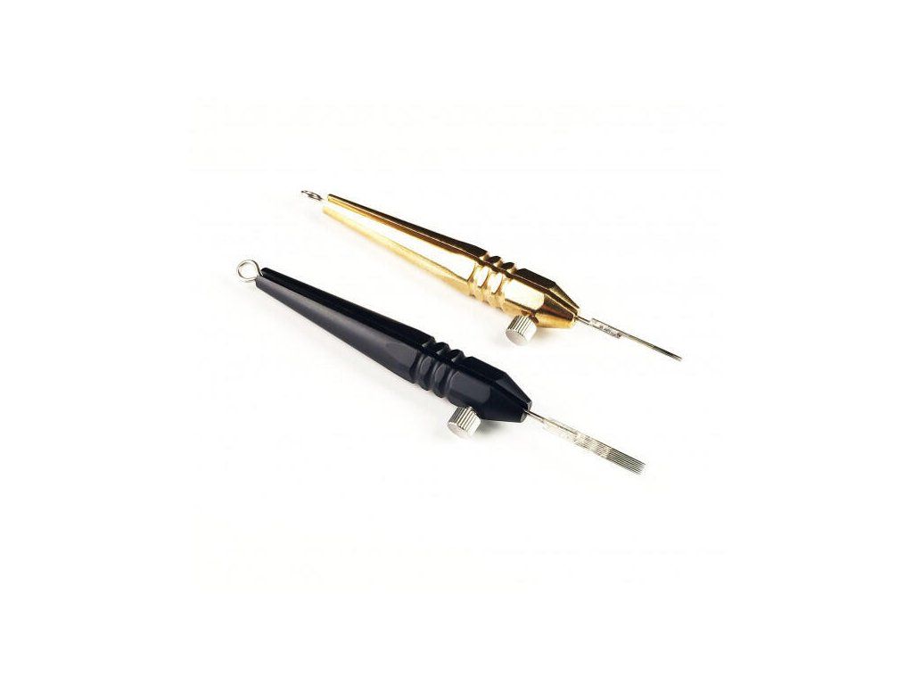Gereedschap voor handpoke met een klassieke tatoeagenaald, het is niet nodig om de naald in te korten