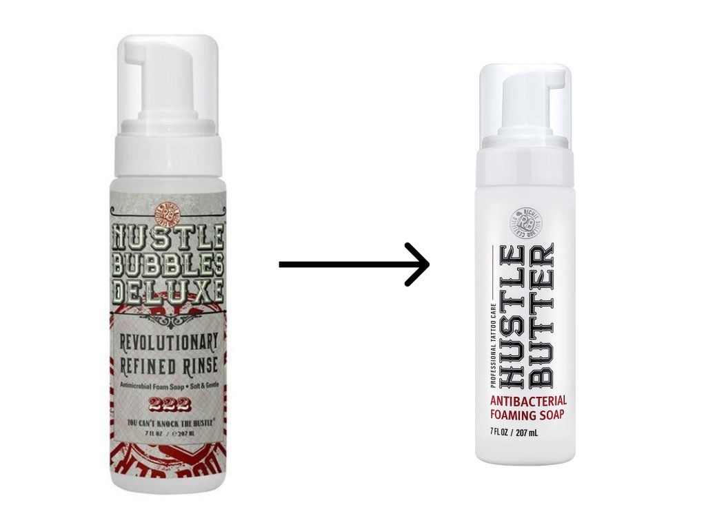 Hustle Bubbles is een antibacteriële zeep voor het reinigen van de huid tijdens het tatoeëren in dik schuim. U kunt Hustle Bubbles Deluxe gebruiken als vervanging voor groene zeep dankzij de antibacteriële werking. Hustle Bubbles Deluxe vermindert de hoeveelheid bacteriën op de huid, terwijl het de huid verzacht, reinigt en hydrateert. U hoeft niets meer te mengen - het product is al gemengd, in een spray met pomp, dus het heeft geen menging nodig, gewoon knijpen en gebruiken.... Hustle Bubbles Deluxe is een natuurlijk, veganistisch product en ruikt heerlijk, net als Hustle Butter. Hustle Bubbles Deluxe wordt geleverd in een 207 ml fles met pomp, verkrijgbaar als losse spray of in een doos van 12 stuks tegen een gereduceerde prijs.