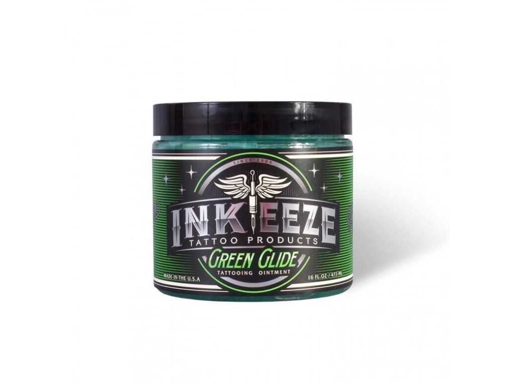 INK-EEZE Green Glide is een op essentiële oliën gebaseerde vaseline, niet op aardolieproducten zoals standaard vaseline. De formulering is ontwikkeld door tattoo artiesten van wereldklasse en experts op het gebied van huidverzorging. Pink Glide kan worden gebruikt als glijmiddel tijdens het tatoeëren, evenals een product voor de verzorging van verse tatoeages als hulp bij de genezing. Pink Glide is samengesteld uit lavendel, zoethout, groene thee en granaatappelextract om de huid te verzachten, hydrateren en beschermen. Ideaal voor gebruik tijdens het tatoeëren en als aftercare crème. INK-EEZE Green Glide bevat: saffloerolie bijenwas synthetische bijenwas kalabawax koninginnenbrij-extract propaandiol propolis Red 7 geurstoffen INK-EEZE pro-team zijn: Roman Abrego, Mr. Scary, Rick Walters, Opie Ortiz, Clark North, Abey Alvarez, Dominic Vasquez, Nickhole Arcade, Ruthless, Rob Hill, Shaun Kama, James J. Peterson en Halo