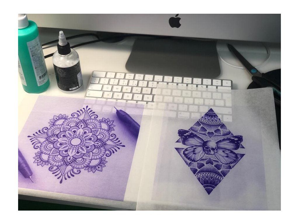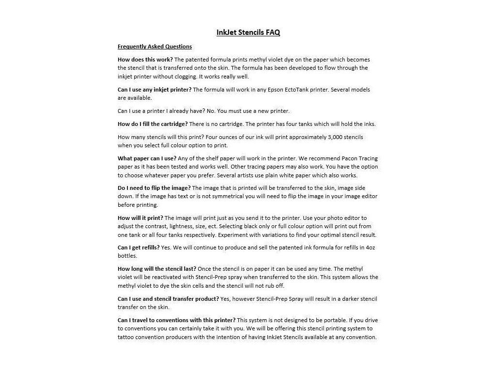 InkJet Stencils is een nieuwigheid voor het aanbrengen van ontwerpen. Het is een speciale inkt die rechtstreeks in een EPSON EcoTank inkjetprinter wordt aangebracht (ongeacht het model). U selecteerde, bewerkte ontwerp kunt u eenvoudig afdrukken op speciaal of standaard papier en overbrengen op de huid. Een groot voordeel is de ongeëvenaarde kwaliteit van de transfers, die niet bereikt kan worden met standaardmethoden. Een volume van 120 ml kan tot 3000 afdrukken produceren. Uitzonderlijke transferkwaliteit, perfecte details 100% Vegan goed voor maximaal 3000 afdrukken Gemaakt in de VS compatibel met Epson EcoTank printers we raden aan om in een nieuwe printer te gebruiken (mag niet worden gemengd met conventionele printerinkt) - zie Engelse handleiding foto