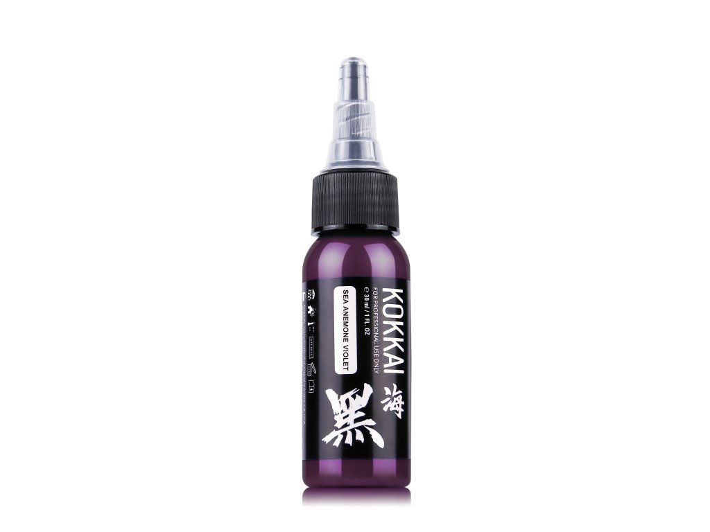 De Sea Anemone Violet tattoo-inkt van Kokkai Sumi Inks combineert traditionele Japanse sumi-inktproductietechnieken met moderne tattoo-inktproductie, wat resulteert in een levendig, dieppaars pigment. Geïnspireerd door de levendige kleuren van zeeanemonen, levert deze inkt levendige, rijke paarse tinten met een uitzonderlijke consistentie en een soepele applicatie.