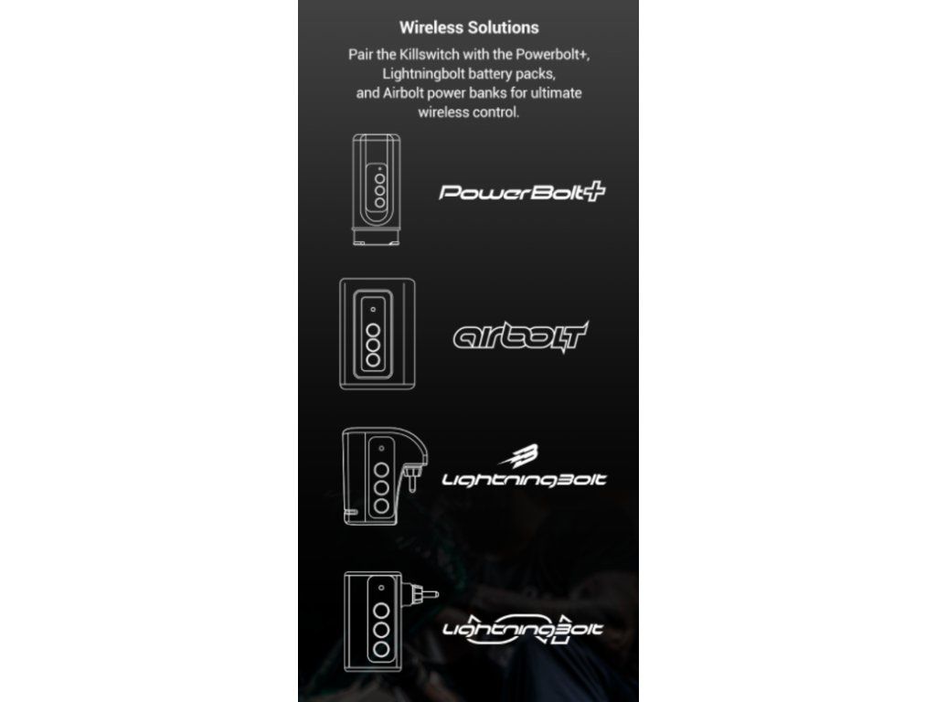 De Darklab Killswitch is de eerste schakelaar van FK Irons die is uitgerust met een versnellingsmetersensor zonder mechanische onderdelen, wat volledige draadloze bediening betekent. Met een simpele tik op de Killswitch kunt u het aangesloten Darklab-apparaat in- of uitschakelen, terwijl de ingebouwde antislipmat de schakelaar op zijn plaats houdt. De Killwitch is ook voorzien van responsieve LED-indicatoren en een interne oplaadbare batterij met lange levensduur. De Killswitch kan via Bluetooth verbinding maken met de Darklab-app voor draadloze firmware-updates, het wijzigen van apparaatprestaties en het uitbreiden van de functies van PowerBolt+. De Killswitch is compatibel met PowerBolt+, Lightning Bolt, Airbolt en Airbolt Mini. Let op: de Darklab Killswitch is niet compatibel met de originele PowerBolt. model Flux en EXO.
