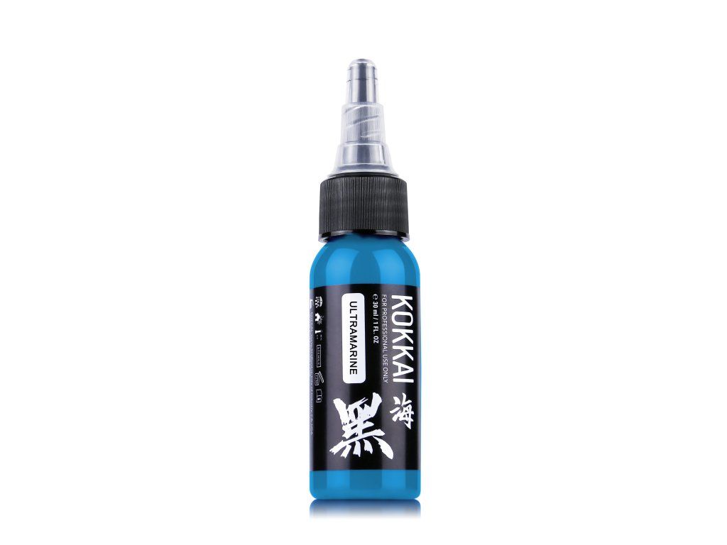 Ultramarine tattoo inkt van Kokkai Sumi Inks combineert beproefde technieken van traditionele Japanse sumi-inktproductie met moderne tattoo-inktproductie, waardoor een pigment ontstaat dat levendige intensiteit en precisie biedt.